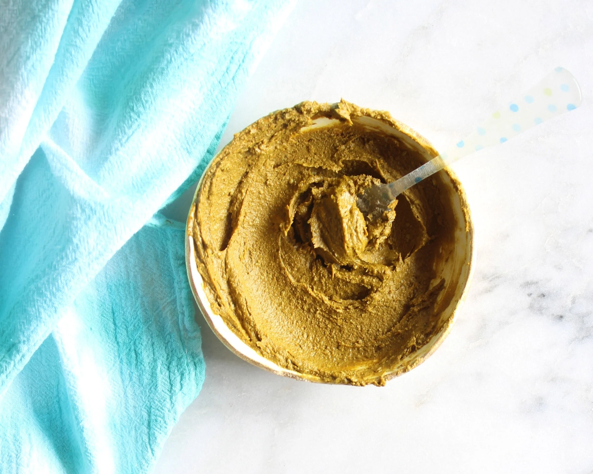 Mix the ingredients in a small bowl using a non-metal spoon (metal causes the clay to become less effective). If your coconut oil is more solid you may need to add a bit more to make the mask thinner. Spread the mask on your face so it’s about 1/8 inch thick. Let it dry for about 15 minutes, then remove it with warm water. Turmeric can sometimes stain fabric so use an old washcloth to remove the mask and dry your face.